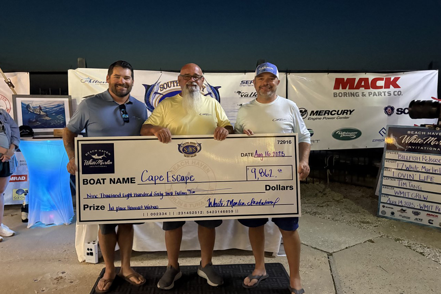 Shark Byte came in second in cash winnings with $114,478. The top cash prize went to Jersey Nutz, which earned a $138,616 payday. Jersey Nutz also hauled in the biggest tuna, a 167-pound big-eye.